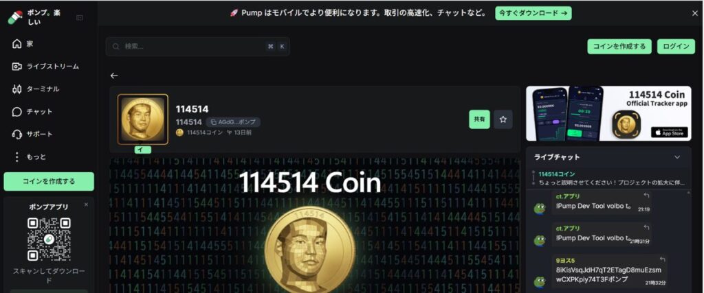 野獣先輩コイン(114514)は Pump.fun より購入可能です。
