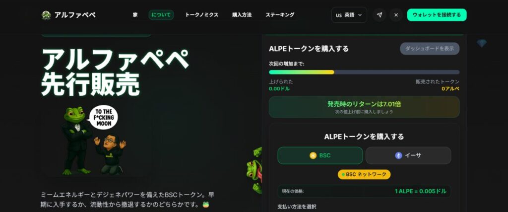 Alpha Pepe は、バイナンス・スマート・チェーン(BSC)上に構築された『次世代のPEPE系ミームコイン』としてプレセールが開始となりました。