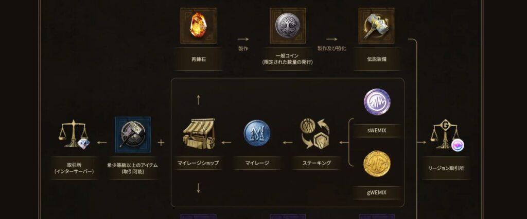 - ゲーム内で モンスターを倒す/クエストをクリア → ゲーム内通貨「G‑WEMIX」を獲得