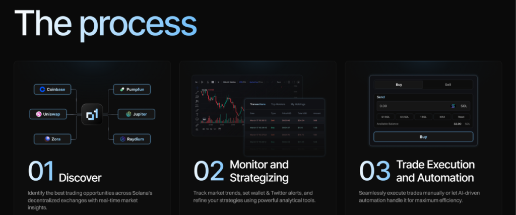o1.exchange は、Solana(ソラナ)やBase(ベース)といった高速チェーン上で動作する『AI強化型の分散型取引ターミナル』です。