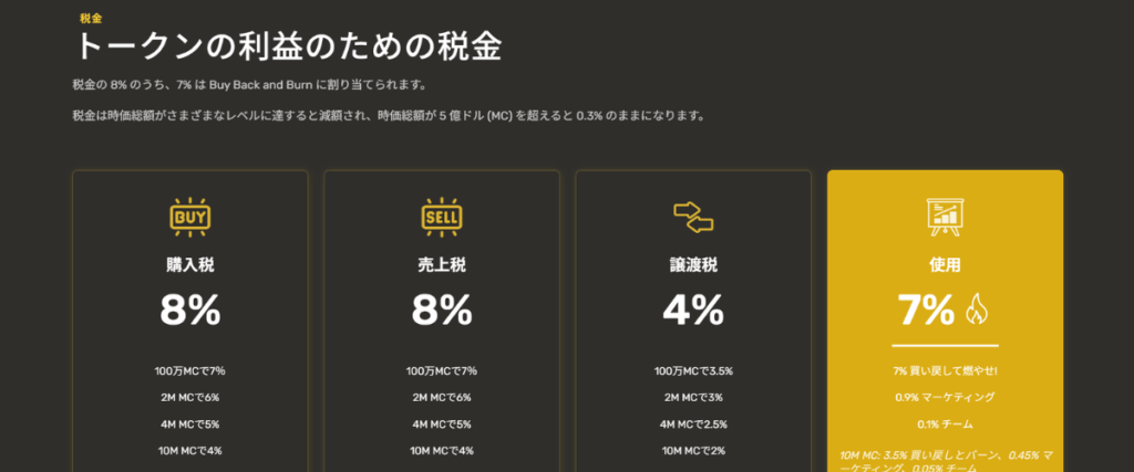 - 買い戻し&焼却(BBB):トークンを買い戻して永久になくす(焼却)ことで、市場の供給量を減らし、価値を高める仕組み。