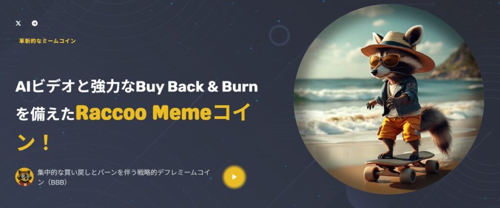 Raccooは『AI動画×アライグマをテーマにしたミームコイン』です。