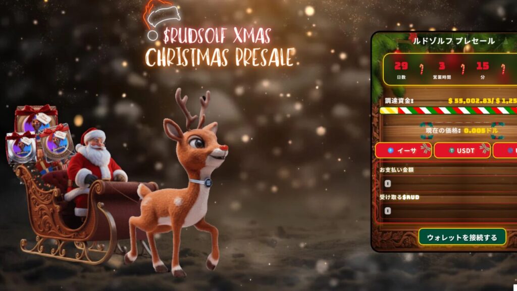 RUDSOLF は『クリスマスに特化したミームコイン』として、登場し仮想通貨市場にインパクトを集め投資家から注目と期待が高まっているプロジェクトです。