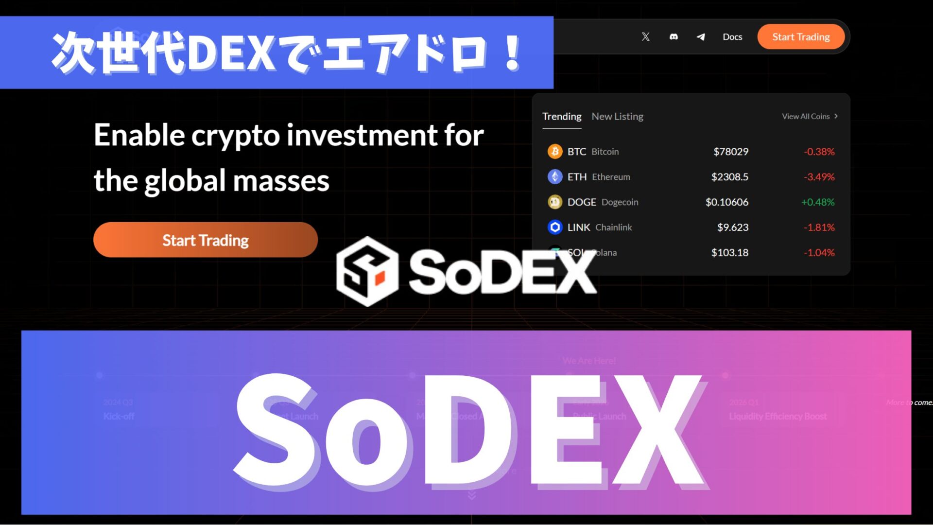この記事では、なぜ SoDEX がこれほどまでに注目されているのか、その理由と具体的な特徴、そして初心者でも見逃せないお得な利用メリットについて分かりやすく解説します。
